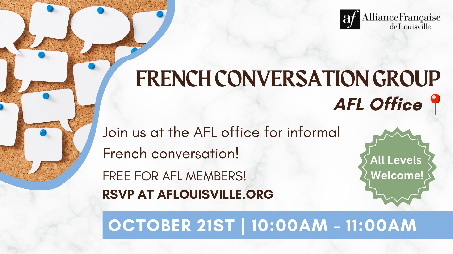 Description: Join us for informal French conversation with a native French speaker from Montreal, Canada; Susana Trindade! (All levels are welcome.)