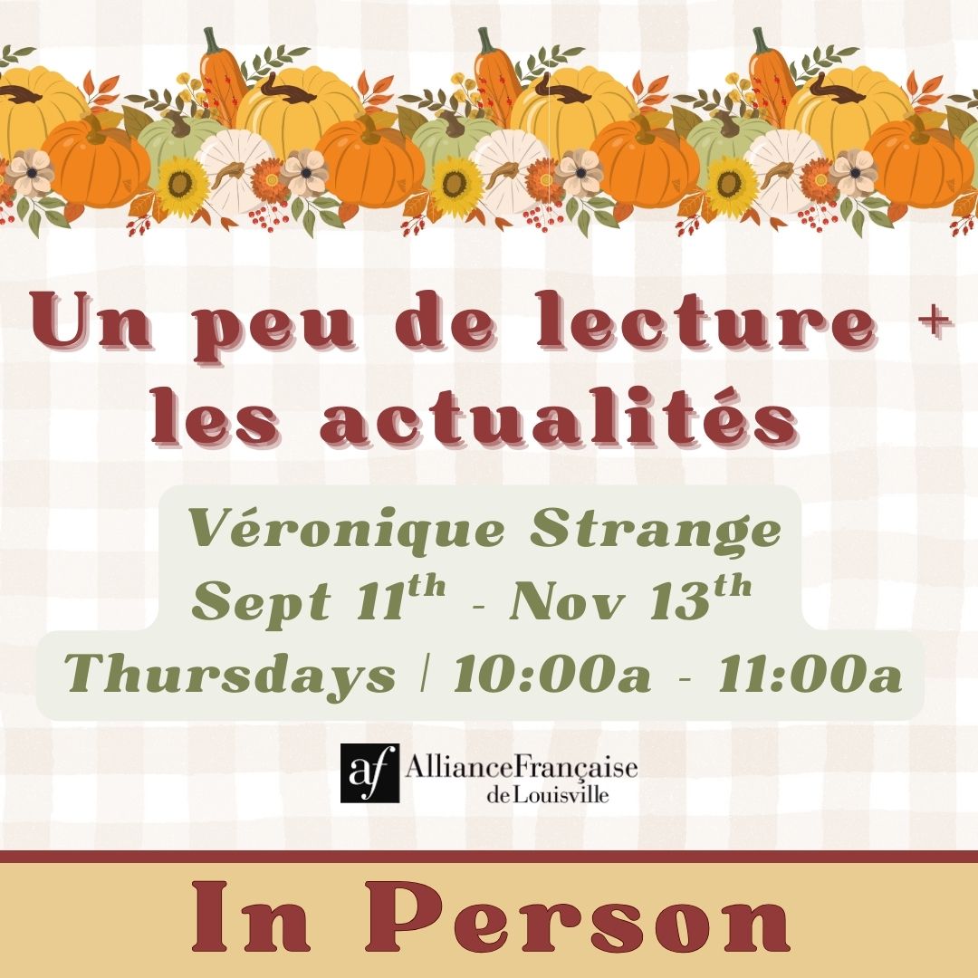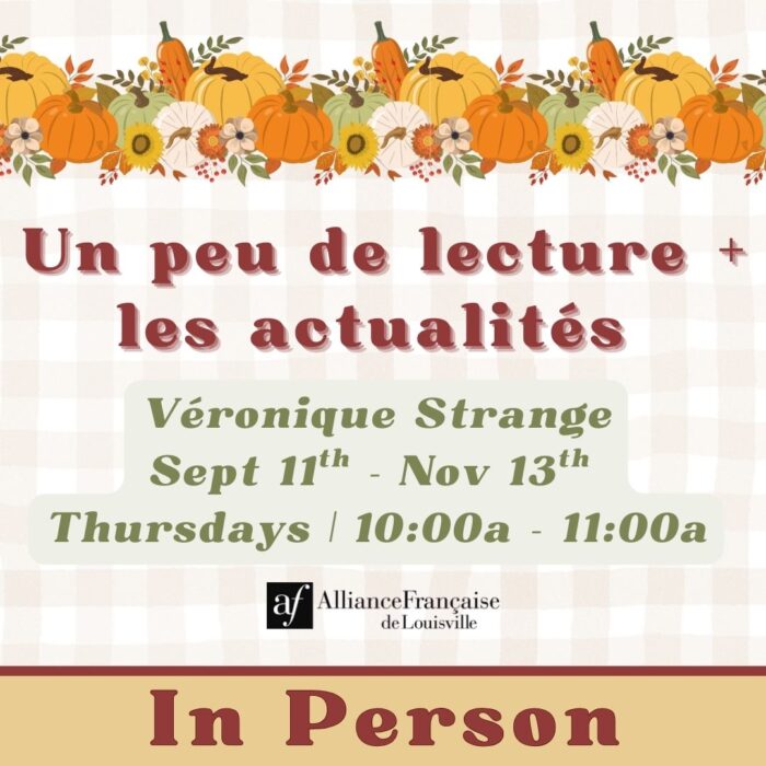 • Adults registering for courses must be members of Alliance Française de Louisville. Membership (at student rate) may be purchased at time of registration.